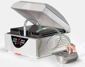 Szívóberendezés tasak nélküli vákuumozáshoz Green-Vac tálcákban. A Green-Vac lehetővé teszi az élelmiszerek gyors és egyszerű vákuumozását közvetlenül a rozsdamentes acélból készült gastronorm tálcában.