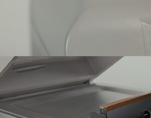 A kamra fedele kikapcsolt állapotban kézzel tisztítható. Így a munkafelület védve van a külső hatásoktól – megakadályozva a szennyeződések lerakódását.