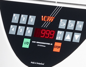 A párolgási pont érzékelő megakadályozza, hogy az áruk súlyukat veszítsék vagy kiszáradjanak, és lehetővé teszi folyadékok csomagolását. A párolgási pont (a lehető legjobb vákuum) elérése után a gép automatikusan hegesztési módra vált, lerövidíti a ciklusidőt és csökkenti az energiafogyasztást. A folyékony vagy nedves termékek így a lehető legjobb minőségben kerülnek vákuumozásra.
